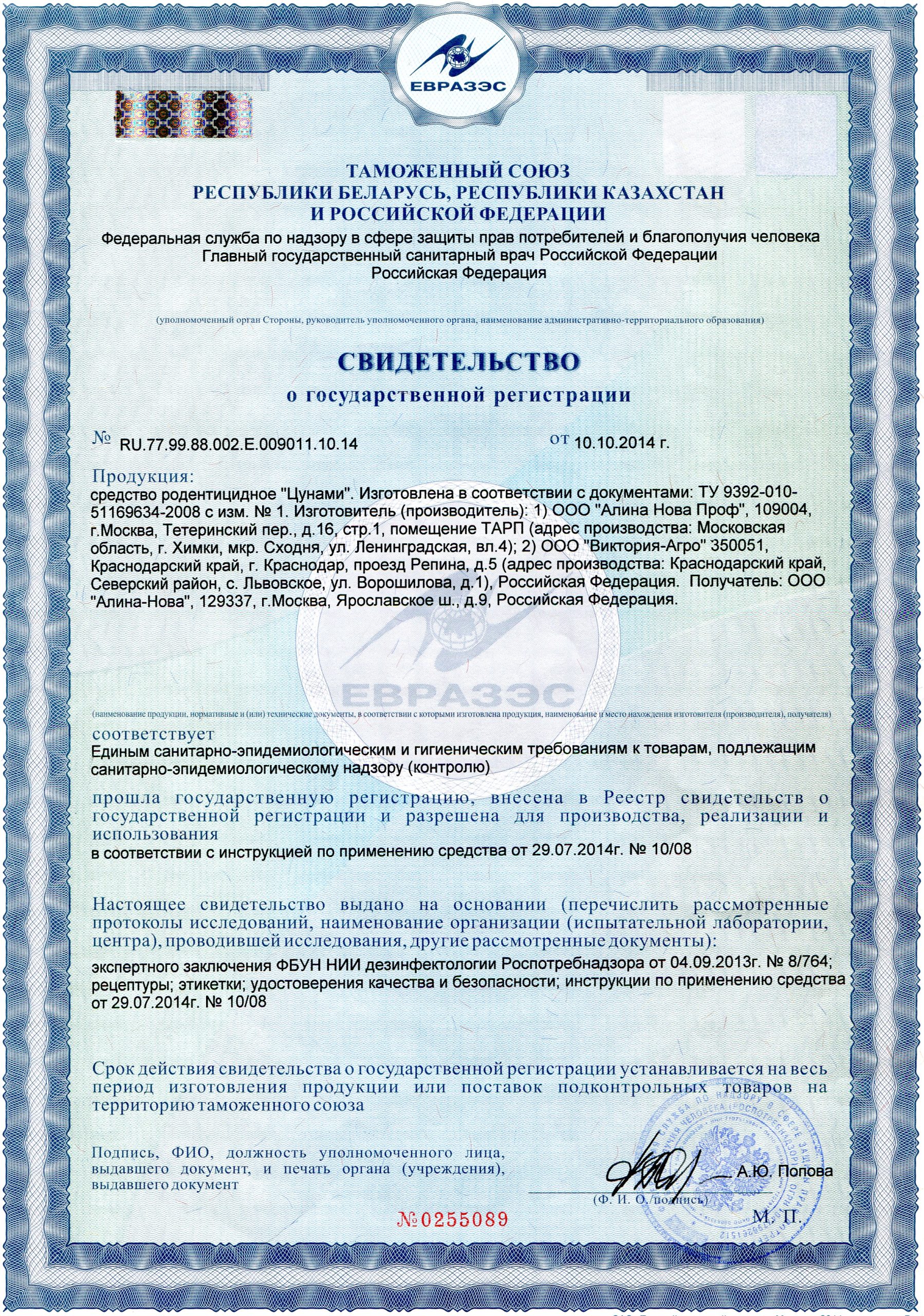 Свидетельство о государственной регистрации